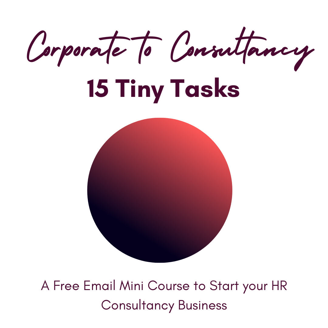 Sign up for The 15 Tiny Tasks to Start your HR Consultancy Business and you will get an email each day with a task that will take you about 10 – 15 mins a day to complete. Start today and in 15 days time you will have your business plan fully outlined and you will be ready to go!